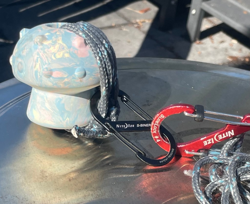 Enter those miracle geniuses who invented dog toys. I’ll never forget when I finally found this one in the pet section at REI. This mushroom-shaped toy is perfect. Made of vulcanized rubber, it’s dense and heavy—but not too heavy. It’s hollow, so I was able to permanently tie a clip for easy attachment to my bear bag line. It’s small and aerodynamic—easy to throw and aim, like a grenade or a baseball. And without fail, it always falls back to me with only a smidge of slack thrown up in the line. My days of spending 20 minutes rethrowing my bear bag lines are now thankfully over . . . for the most part.
