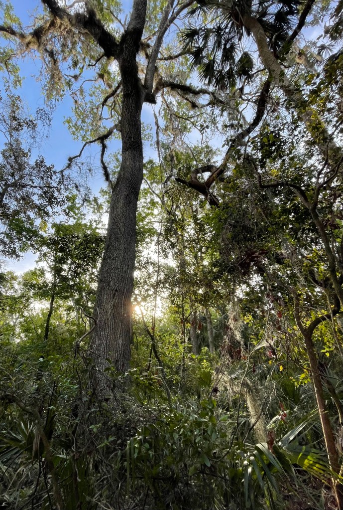 The 3.7-mile main trail leads through a forest that feels much more secluded and enclosed by tall oak and palm trees than one would expect from a trail so easily accessible. A short half-mile connector trail leads to the 2.7 loop on Flat Island, where the forest becomes more secluded and magical.
