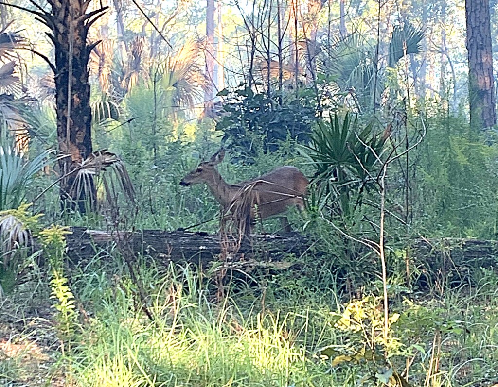 Although Wekiwa Springs offers plenty of hiking options, from the easy 0.8-mile Wet-to-Dry Trail to the 13.5-mile Main Trail, my favorite has always been the Volksmarch Trail, which forms a loop on the southern side of the park not far from the park entrance. By leaving and returning on a connector trail from the parking lot near the springhead and swimming area, a hike on the Volksmarch covers 5.9 miles and provides access to the wildlife and ecosystem variation that visitors love. The trail also offers a surprising amount of elevation change, particularly on the connector trail where I’ve often seen the most deer.