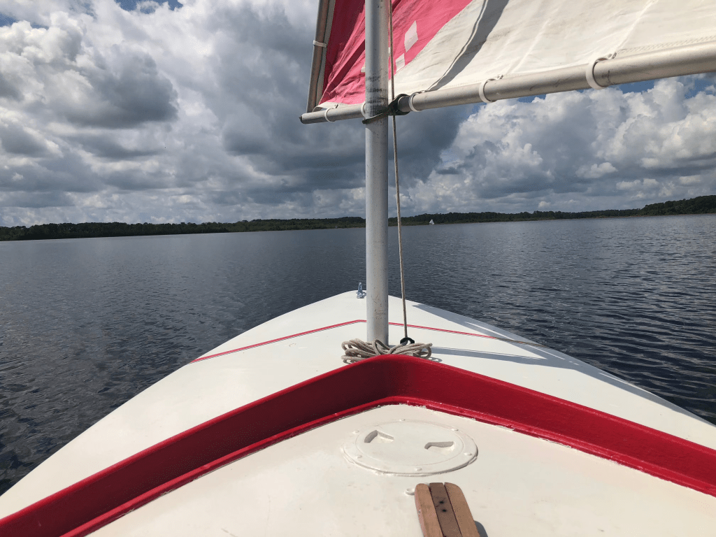 I wrote earlier this year about a great place in Sanford to learn to sail boats longer than 22 feet. But if you’re looking to try sailing on smaller boats that don’t require experience, especially if you’re looking for a place not far from Disney, I recommend checking out Orlando Sailing. I found Orlando Sailing on Meetup, and I had a great time sailing with them this past Saturday.