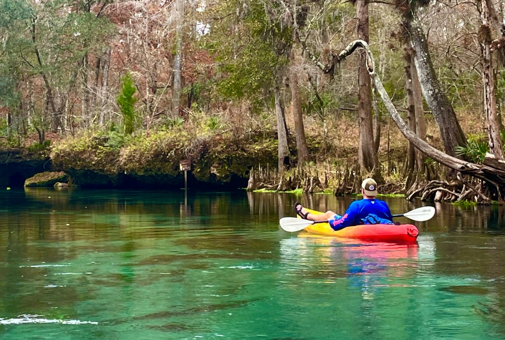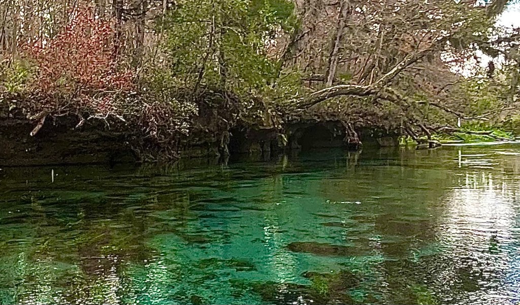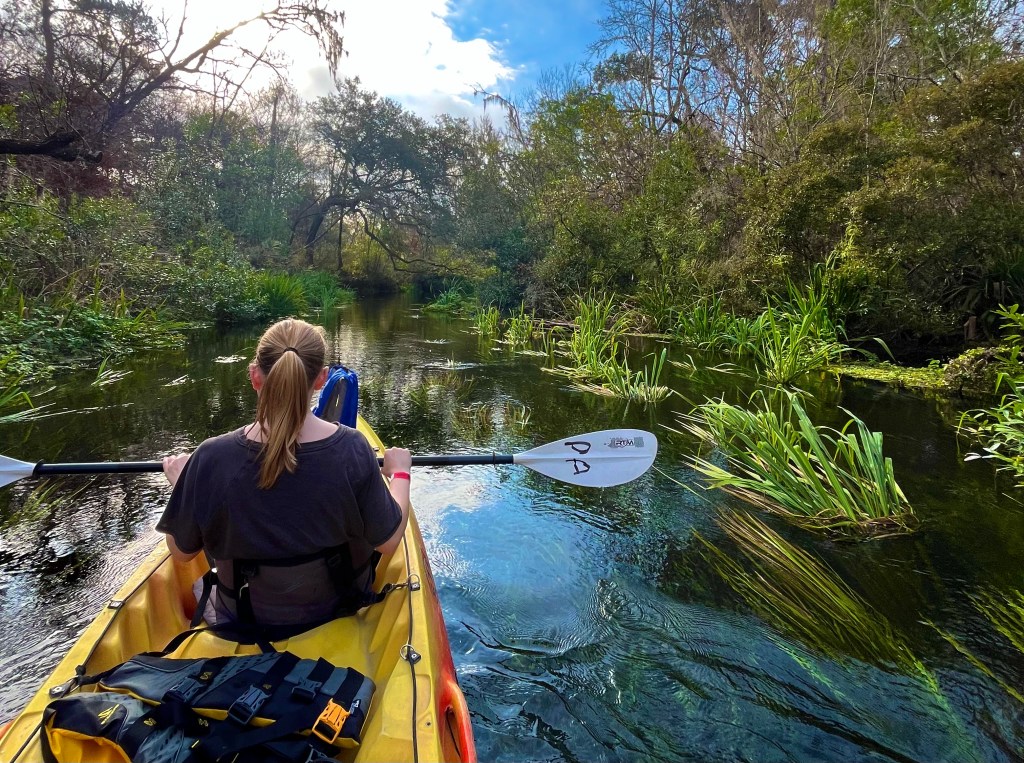 My family and I were blown away by the landscape when we kayaked there shortly after Christmas. The headwaters initially flow over a swaying carpet of aquatic grasses, with the narrow river crowded from shore by overhanging cypress and live oak, some of which tower high overhead. Many portions carve into the limestone karst, with walls as high as ten feet pocked with caves lining the river. Further south the river widens and becomes easy to navigate, often requiring no paddling at all—you just dip your paddle into the river to use as a tiller as the current pushes you along.