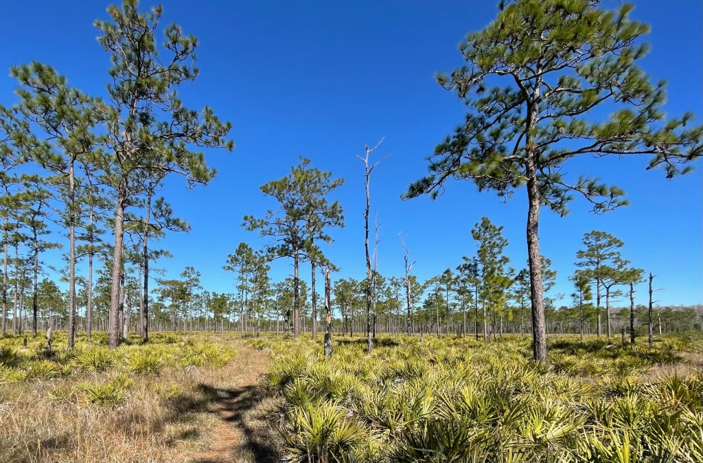 The two Prairie Lakes loop trails traverse all of it. While more than 26 miles of the Florida Trail cross through the entire Three Lakes WMA, the most accessible 5.4-mile leg of the Florida Trail can be found on the eastern curve of the North Loop and the western curve of the South Loop. And with two backcountry campsites and easily accessible trailheads with overnight parking, the Prairie Lakes North Loop and South Loop can be easily combined for a not-too-difficult 11.4-mile one-night backpacking adventure.