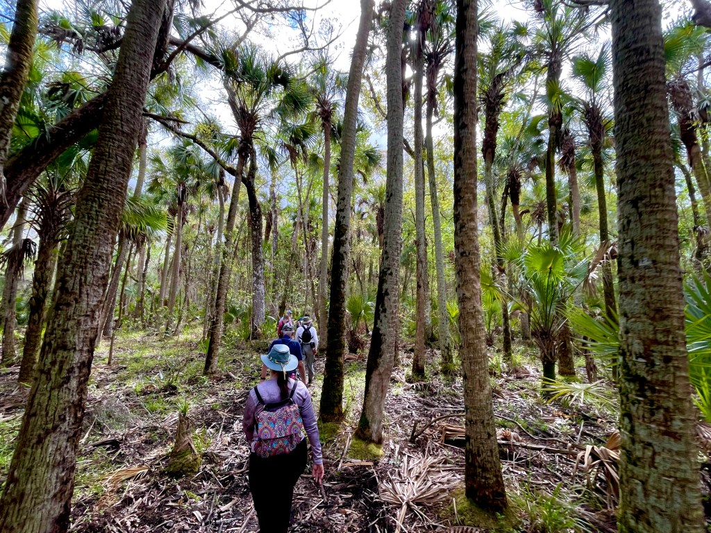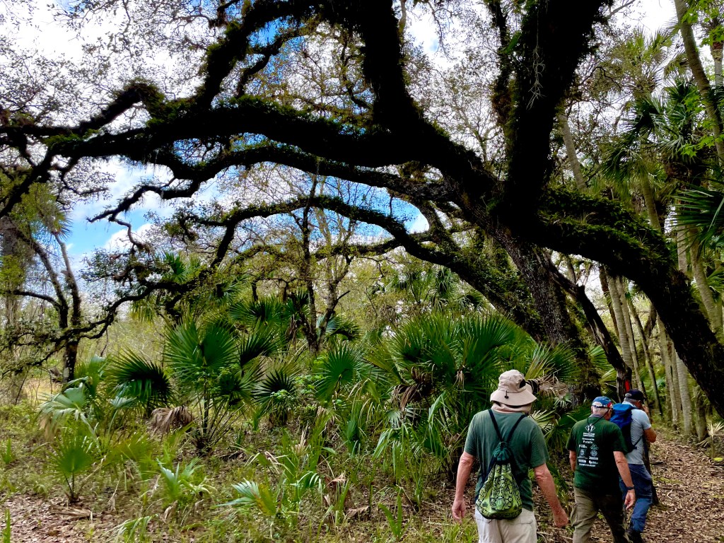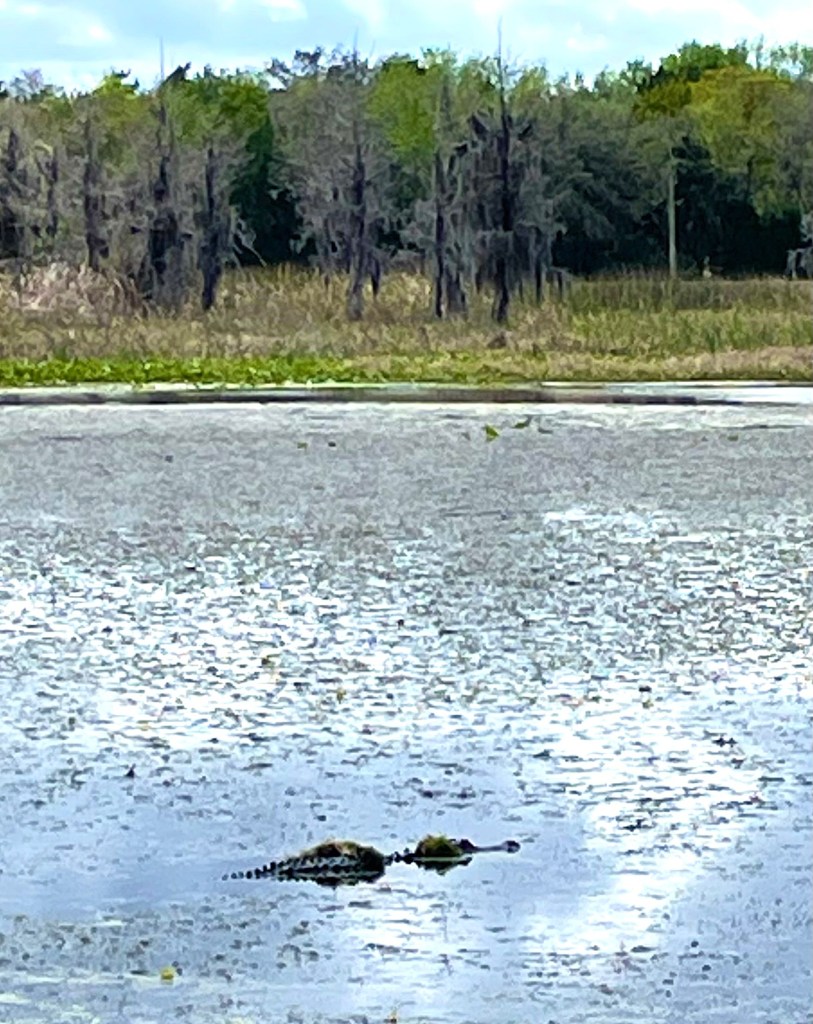 I had planned to include portions of this hike on a one-nighter I took back in January to Joshua Creek camp in Bronson State Forest, but I had to detour at the last minute through Orlando Wetlands because of flooding in Seminole Ranch. But I joined my Florida Trail Association friends this past Sunday for a hike there and enjoyed the scenery and the wildlife—including a pygmy rattlesnake we found beside the trail not far from the canal-side connector trail to Orlando Wetlands and a nest with chicks of roseate spoonbills in a cypress beside the boardwalk at Orlando Wetlands. The trail is now dry and in great shape for hiking after FTA’s winter trail maintenance.
